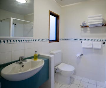 Spacious modern unit with en suite bathroom and garden views.